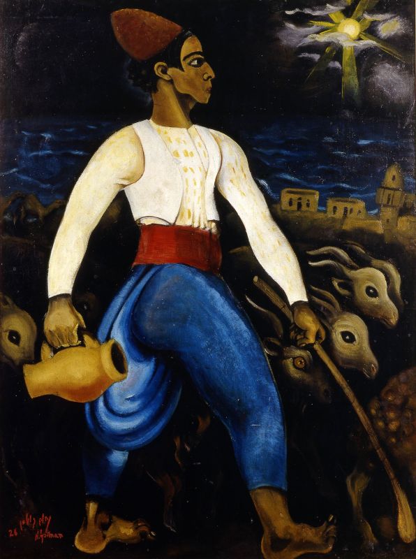 When he goes to her house to offer 3 paintings to replace the ones of his wife, he identifies a painting by Nachum Gutman. There's been scant history of Israeli painting, and here is one reference. "Gutman helped pioneer a distinctively Israeli style, moving away from the European influences of his teachers. He worked in many different media: oils, watercolours, gouache and pen and ink."
